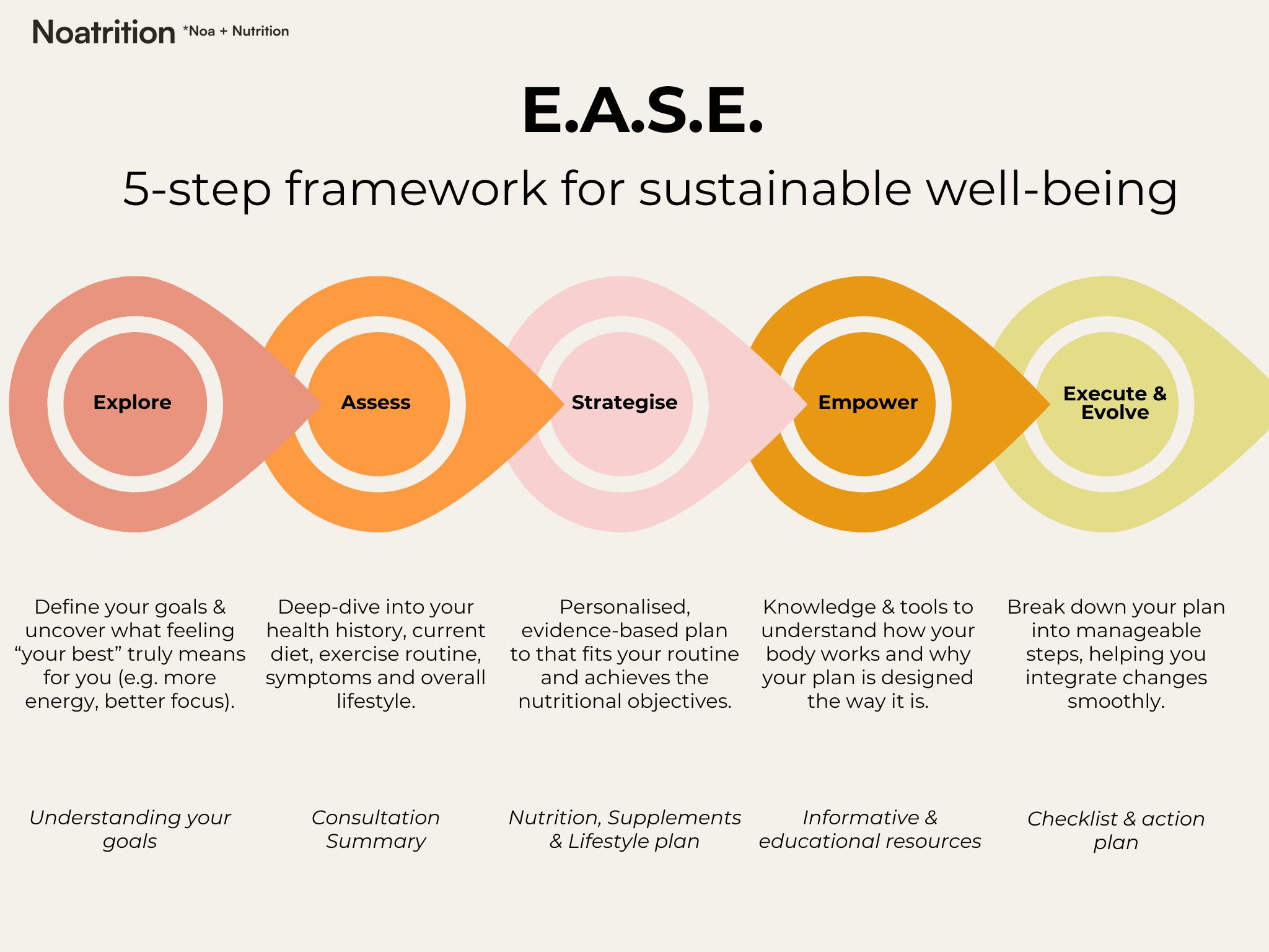 In my consultations I use my 5-step framework, combining nutritional science, behaviour change techniques, and practical strategies to ensure real results.